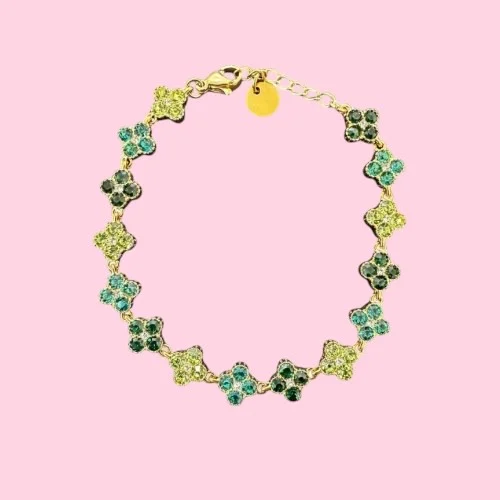 Ce bracelet est idéal pour toutes celles qui aiment exprimer leur personnalité à travers des bijoux délicats, modernes et lumineux. Avec ses fleurs vertes et son éclat doré, il incarne la poésie, la fraîcheur et l’envie de se sentir belle avec un bijou qui raconte une histoire.