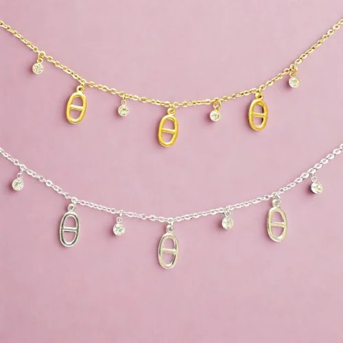 Ce bracelet incarne un équilibre parfait entre simplicité et luxe. Sa chaîne fine et résistante épouse délicatement le poignet, apportant une note d’élégance discrète à votre tenue. Les petits strass, finement sertis le long de la chaîne, capturent la lumière avec chaque mouvement, ajoutant un scintillement subtil qui attire l’œil sans être ostentatoire. Ces éclats de lumière sont subtilement rehaussés par les breloques qui se balancent légèrement, ajoutant une dimension supplémentaire à ce bijou déjà remarquable.
