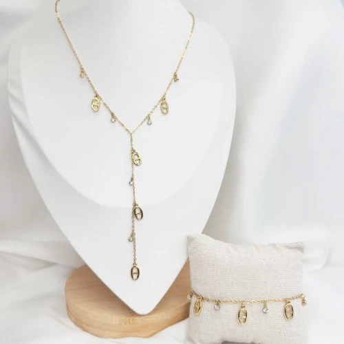 Le collier Lumina en acier inoxydable est l’incarnation de l’élégance moderne. Disponible en doré ou argenté, ce collier serti de strass et orné de breloques délicates est conçu pour sublimer votre style, que ce soit pour une occasion spéciale ou pour rehausser une tenue du quotidien. Sa qualité exceptionnelle, sa durabilité et son entretien facile en font un bijou que vous pourrez chérir pendant des années. Ajoutez une touche lumineuse à votre collection de bijoux avec le collier Lumina, un accessoire qui saura vous accompagner avec élégance en toute circonstance.