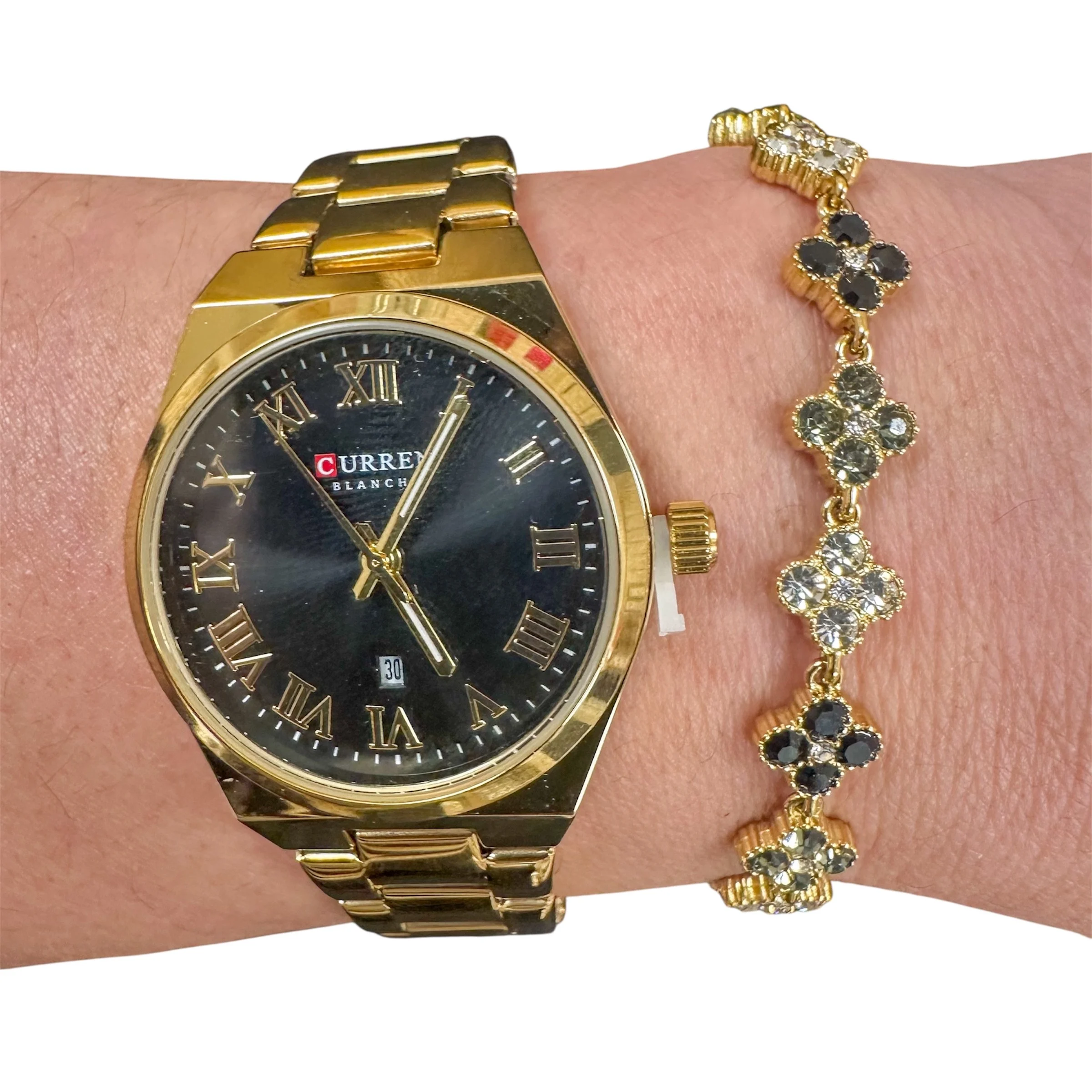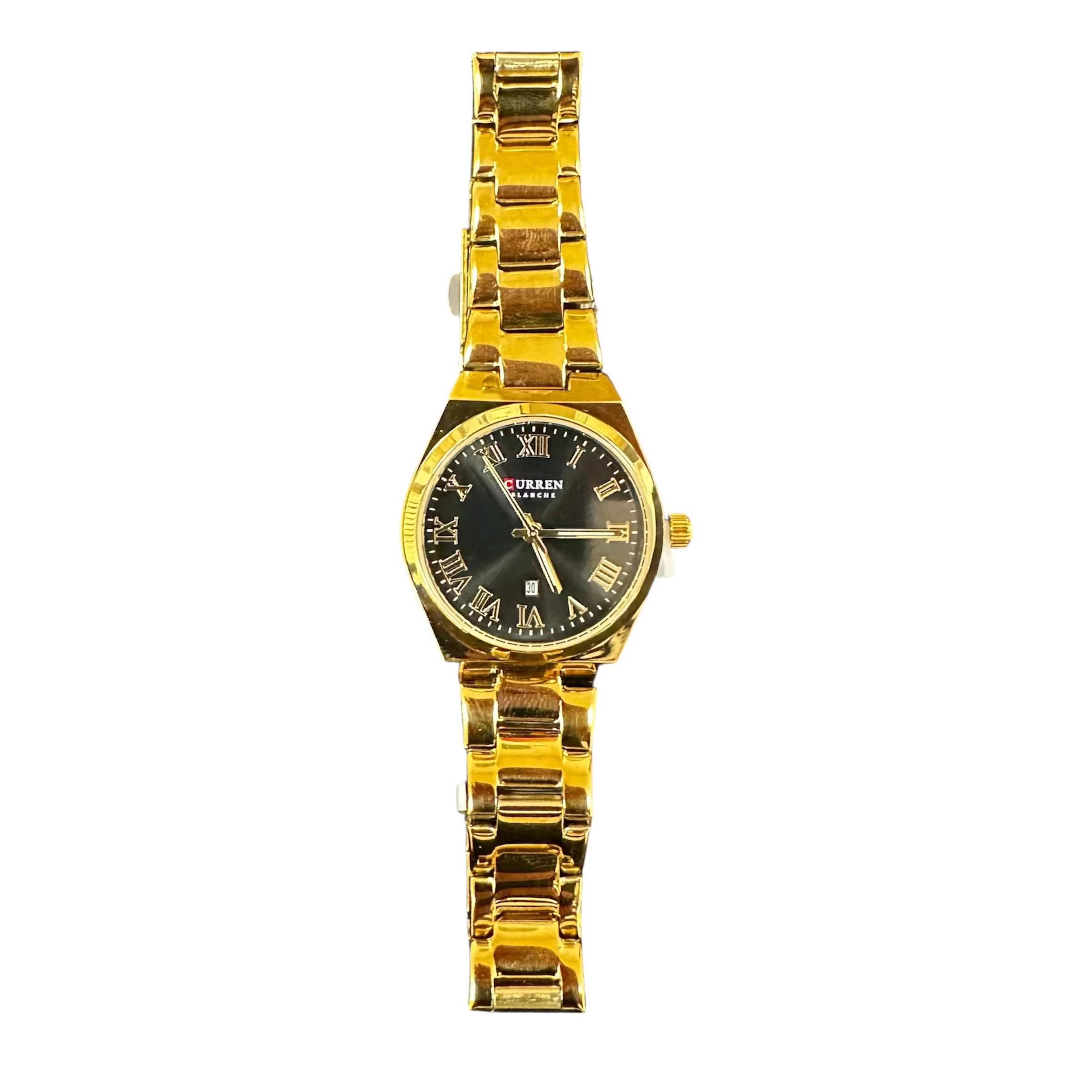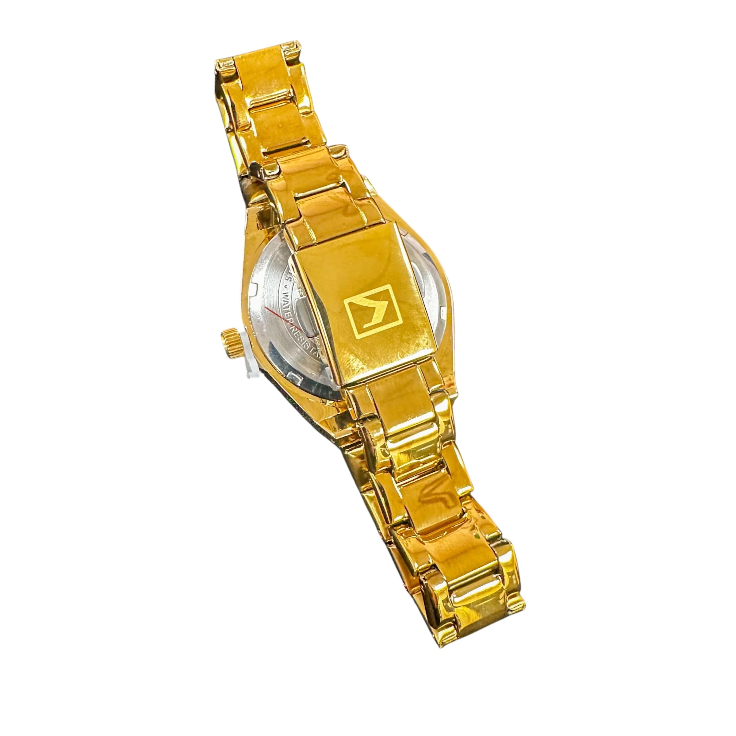 La montre bracelet chic se distingue par sa finition entièrement dorée, à la fois élégante et chaleureuse. Le bracelet, le boîtier, les chiffres et les aiguilles sont tous réalisés dans une teinte dorée lumineuse, offrant une harmonie parfaite à l’ensemble. Cette couleur apporte une touche précieuse sans être excessive, idéale pour celles qui aiment les accessoires élégants et féminins.